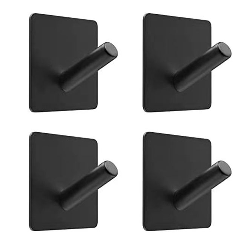 1) Superior Quality: The black adhesive towel hooks is using 304 stainless steel material and surface electroplating treatment (surface brushed treatment for the silver adhesive towel hooks and surface painted treatment for the white adhesive towel hooks ), not only have simple and sleek looking but also have more excellent waterproof, antirust and scratch resistance for long lasting use than plastic hooks.